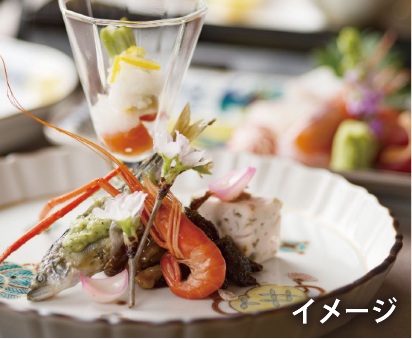 お付出し・八寸・お吸い物・お造里・焼物・温物・揚物・酢の物・御食事・水物