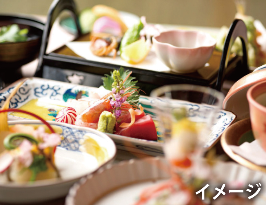 お付き出し・八寸・お吸い物・お造里・焼物・中皿・温物・揚物・酢の物・御食事・水物